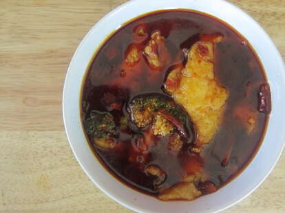 Marked as the spiciest dish on Sichuan Gourmet's menu, the Jin Gu Fish Filets consist of tender sole swimming in an insanely spicy broth bath. This can-easily-feed-two dish is packed with chili oil and an abundance of chopped Thai chilies. Although rice doesn't come with the dish, we highly recommend ordering some (your tongue will thank you). Just be prepared to sweat -- and possibly cry a little.